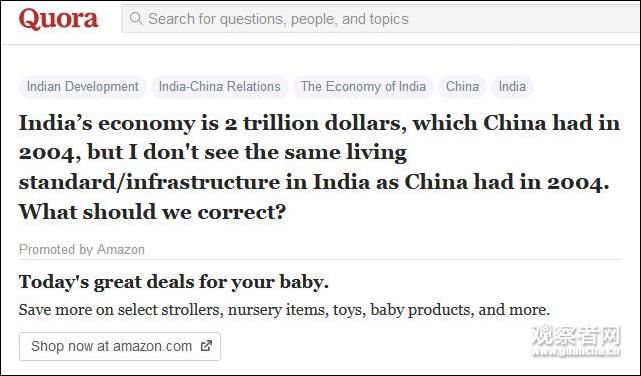 不過(guò)印度拼死修正GDP的做法并沒有收到預(yù)期的反響。近日,在美國(guó)某網(wǎng)站上,有位網(wǎng)友提問,印度今年的GDP總量相當(dāng)于2004年中國(guó)的水平,但為什么印度達(dá)不到同期中國(guó)人的生活水平和基礎(chǔ)設(shè)施?