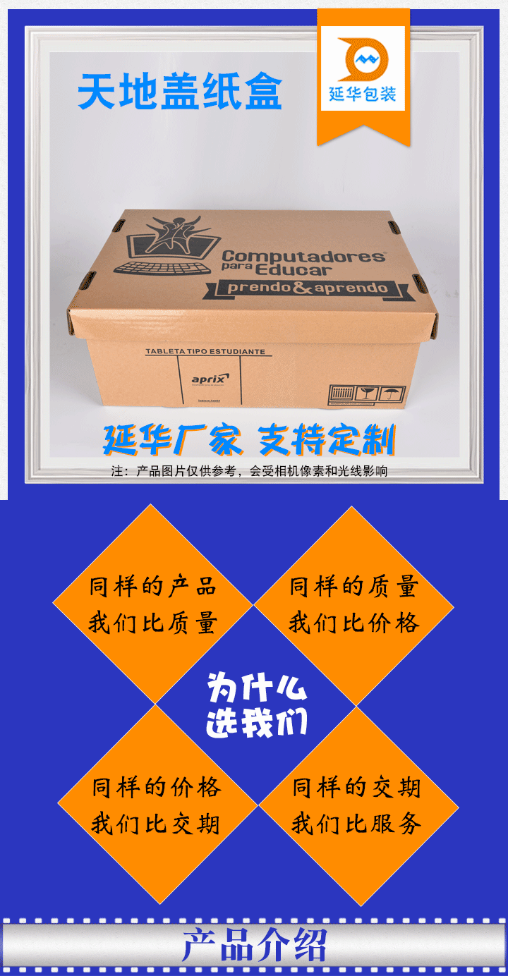 | 天地蓋紙盒的用途: | 產(chǎn)品/商品的搬運(yùn)(保護(hù)產(chǎn)品,方便搬運(yùn)) 可以印刷公司logo(推廣) | |||